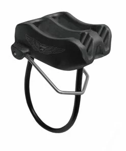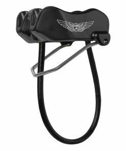 The spring on the Mad Rock Wingman belay device prevents the carabiner from locking when feeding the rope out, making for smooth handling and no jerky feeds. When loaded and the brake is engaged, the spring collapses and enables the device to lock.